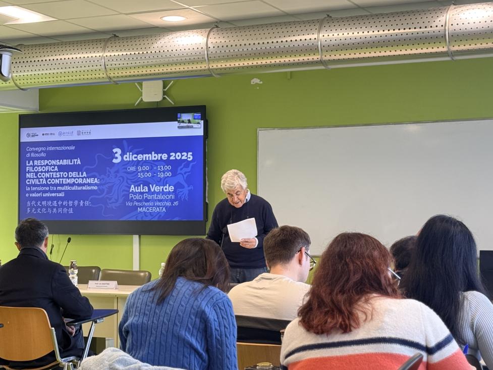 12月2日—5日,由马切拉塔大学孔子学院主办的中意哲学论坛在当地举行。本次活动邀请了马切拉塔大学和北京师范大学的多名知名学者,吸引了众多本校本科生及研究生积极参与。论坛围绕文明冲突、文化多样性、全球治理及哲学责任等议题展开深入交流与研讨。